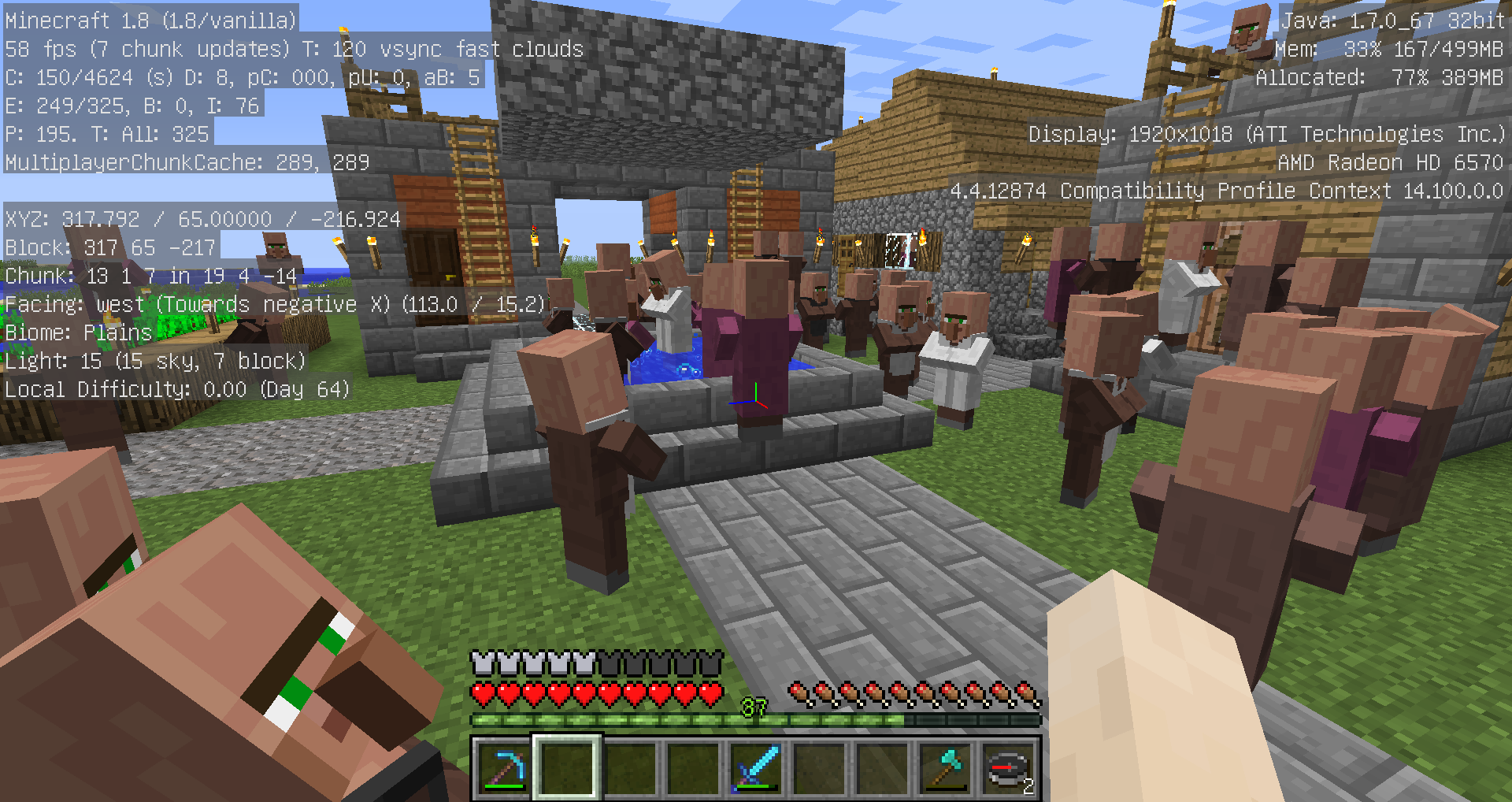 さて、2回に渡りお送りしてきた村人増殖計画ですが、とりあえずゲーム内で64日経過した画像をお見せしたいと思います。