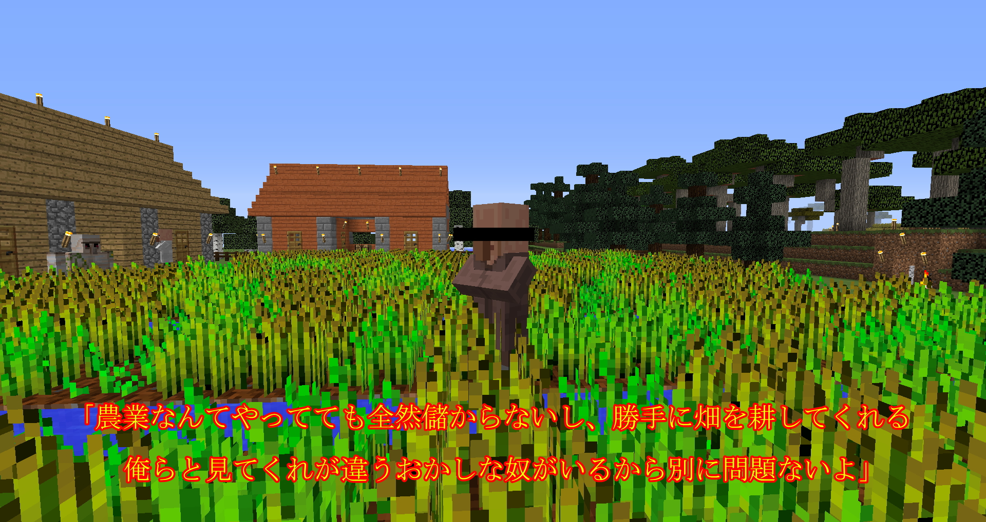 そいつに農作物と交換で「エメラルド」をくれてやれば農業をしなくても農作物は手に入るわけ。